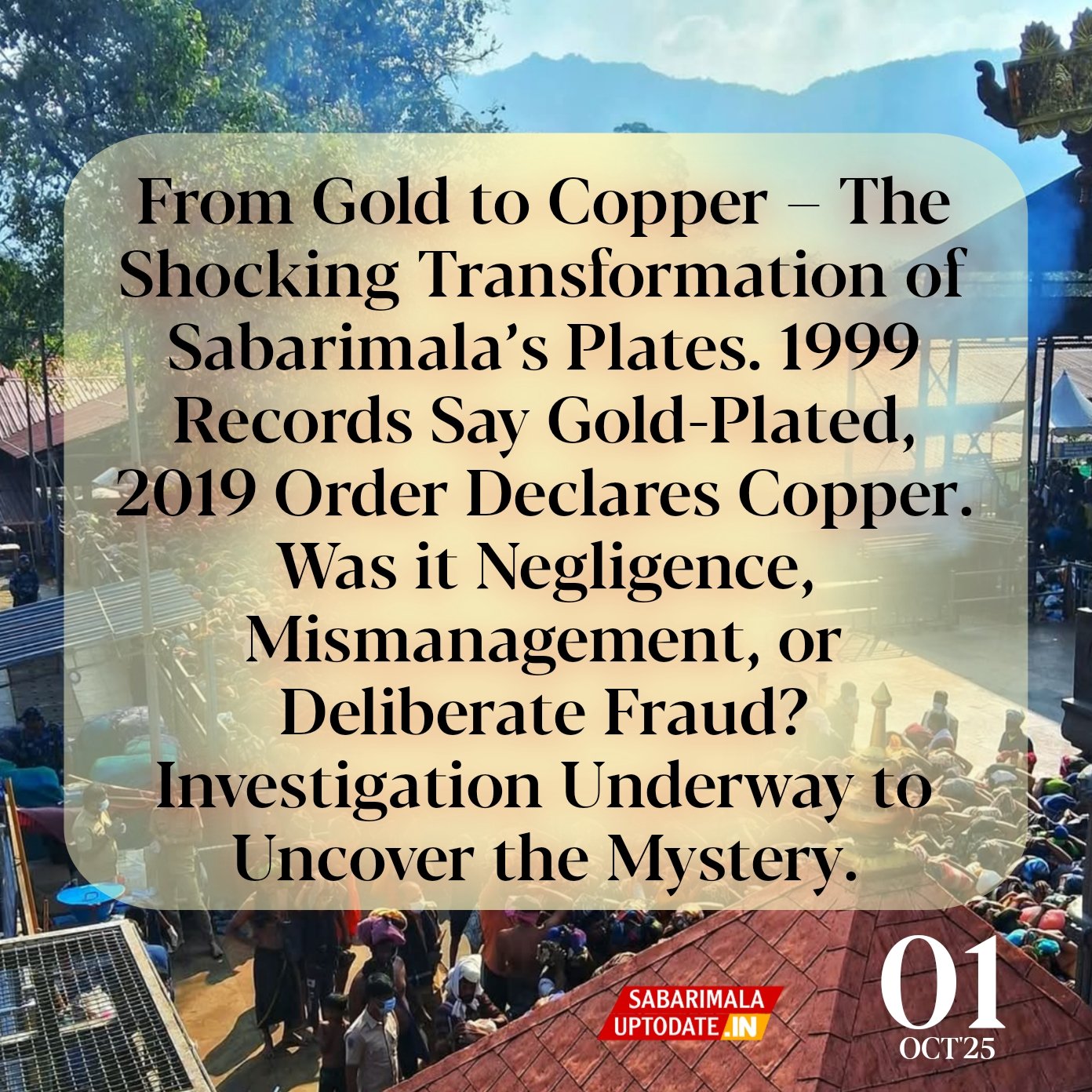 The 2019 directive entrusted the repair and gold plating work to Unnikrishnan Potti, a devotee from Bengaluru, who had applied through the Sabarimala Executive Officer. The order notes that the tantri’s opinion was also considered before granting permission. However, it repeatedly refers to the covering sheets as “copper,” raising the puzzling question of how the gold-plated layers from 1999 had turned into copper by 2019.