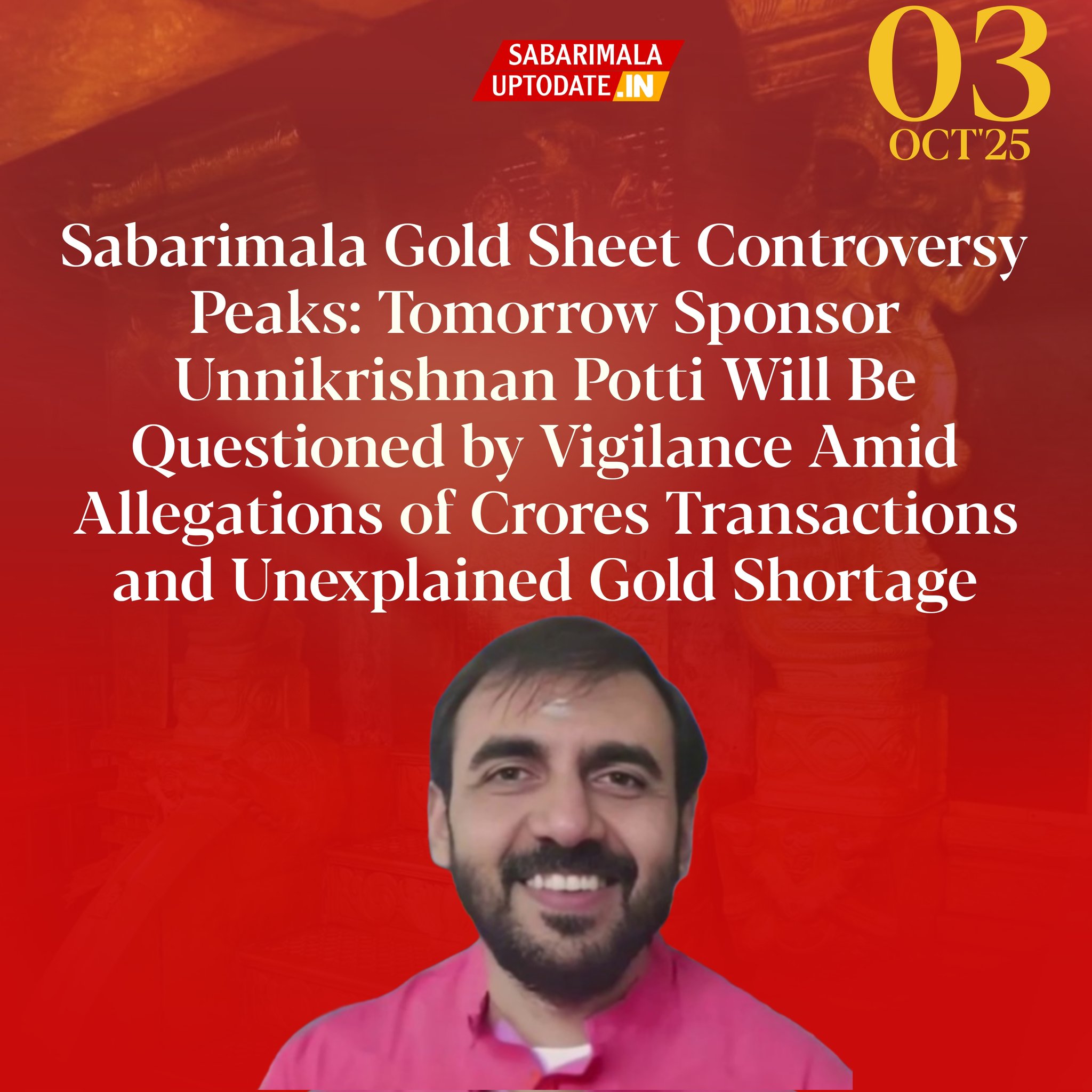 Vigilance has further found that, using Sabarimala as a platform, sponsor Unnikrishnan Potti collected money extensively. There are also suspicions that the gold sheets were taken to Bengaluru in violation of rules as part of these fundraising efforts.
